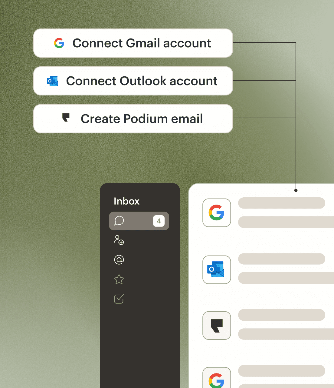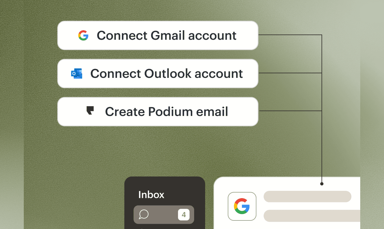 Connect your Gmail or Outlook email address to Podium to send and receive emails from the same inbox you use for texts and calls.