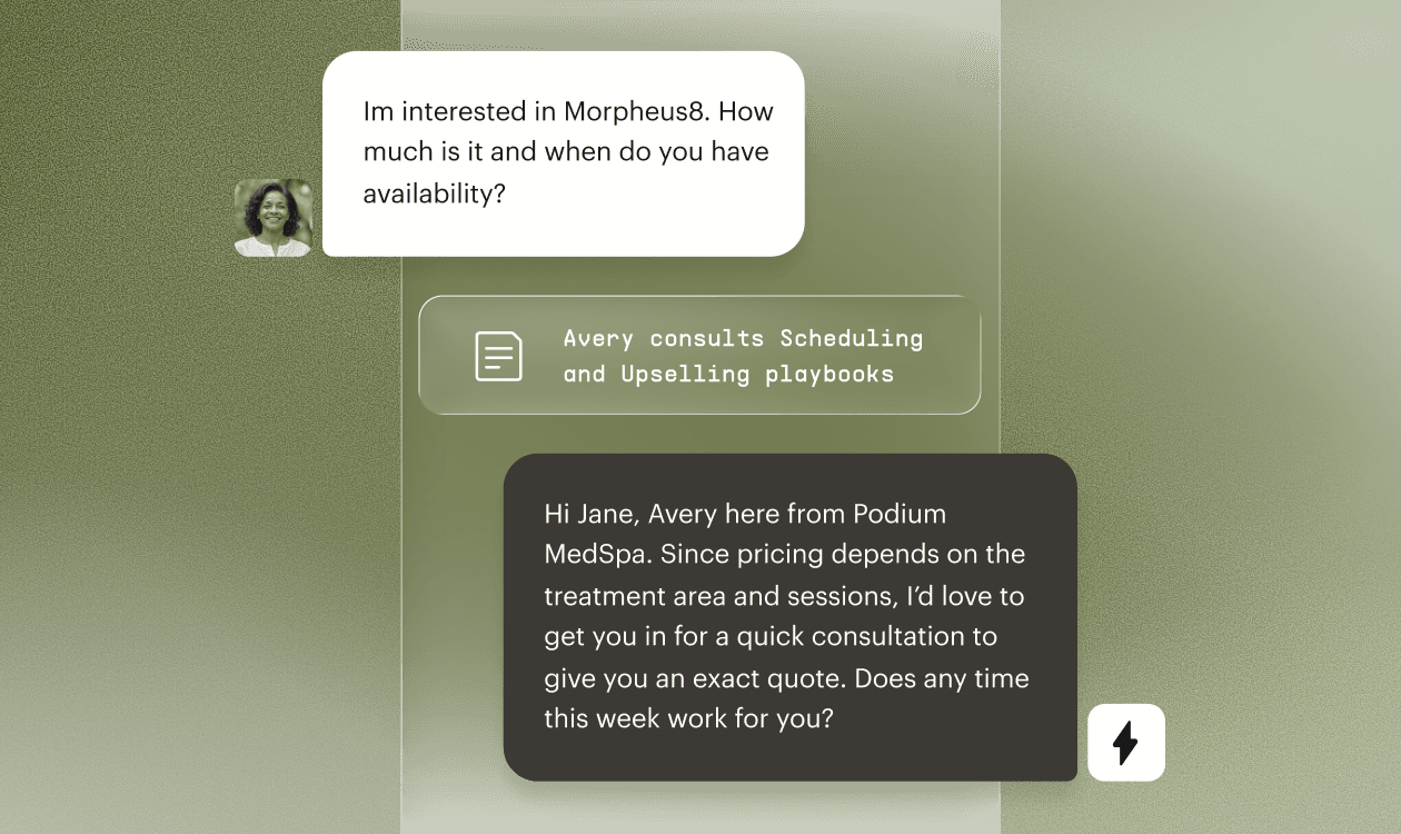 Turn more website visitors into booked appointments. Every web lead comes into Podium, so Avery can reply instantly and convert faster.