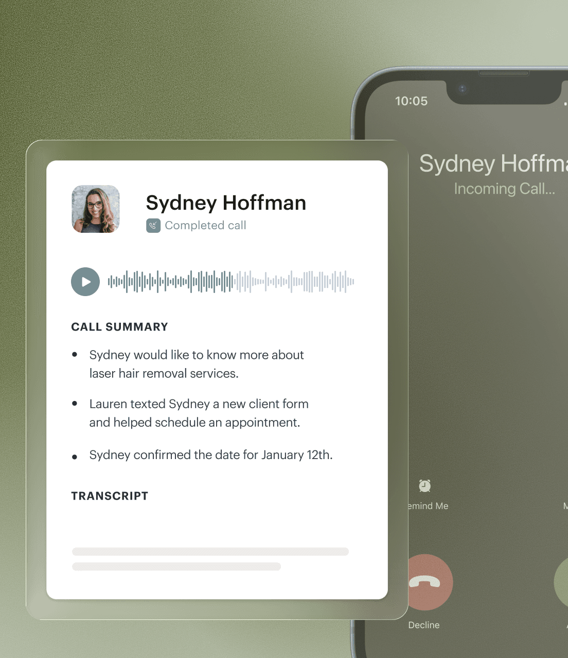 Record and transcribe calls with AI, so your team always has client context.