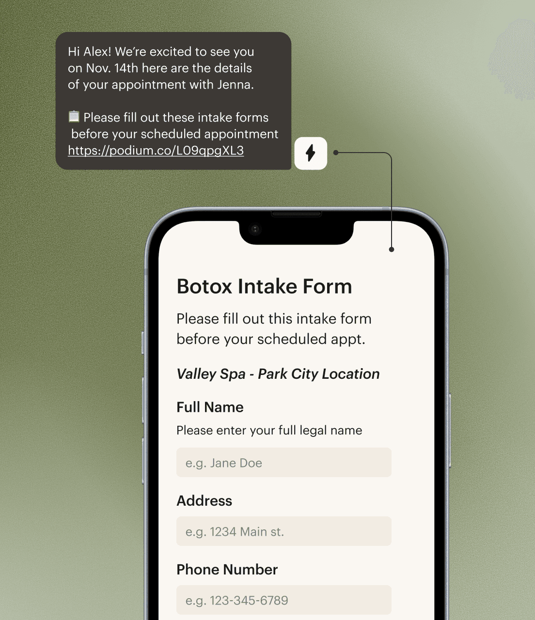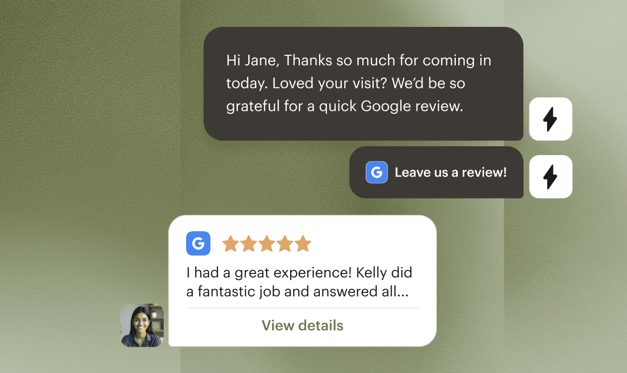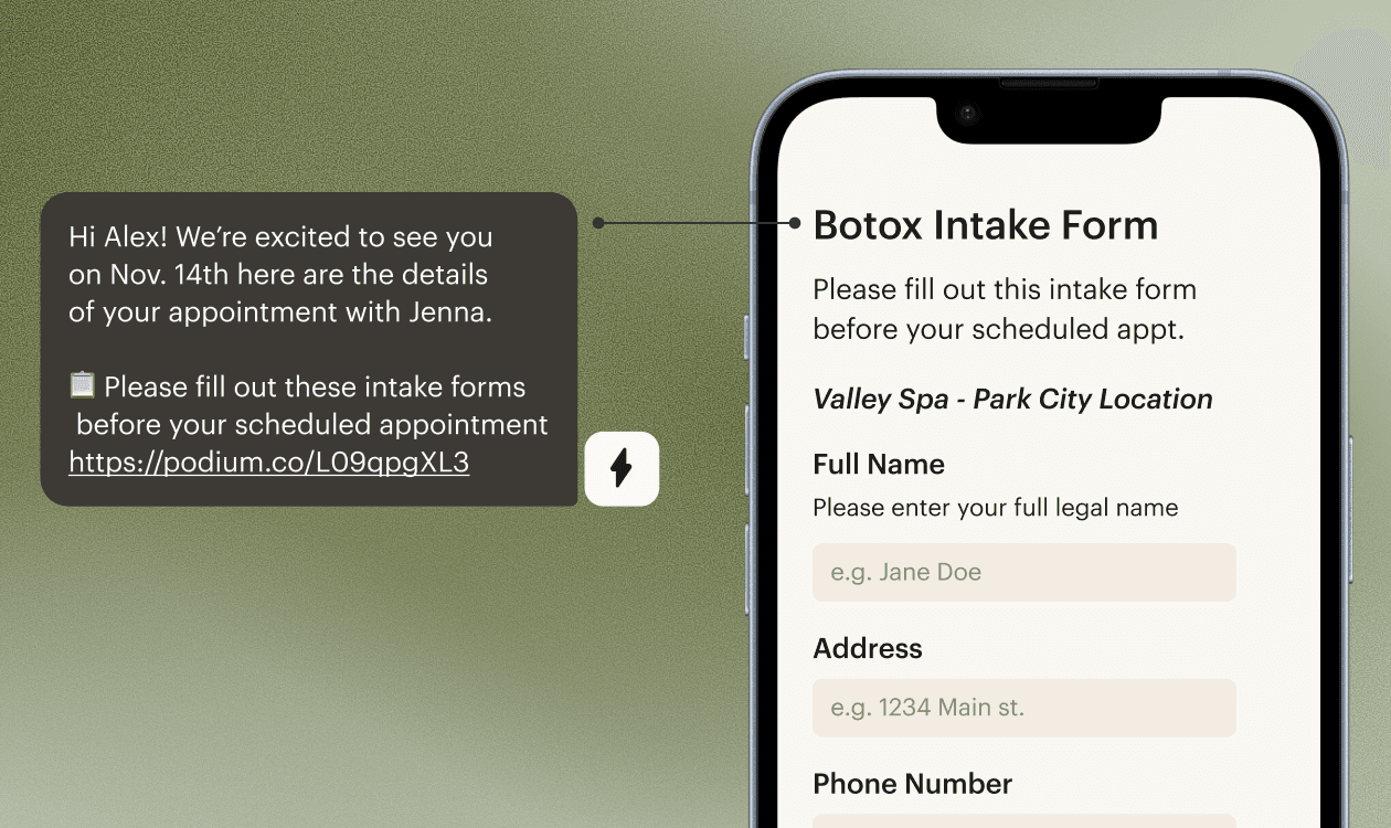 Send payment and deposit links, share pre and post-care instructions, request reviews, and handle everything your practice needs—right from a text thread.